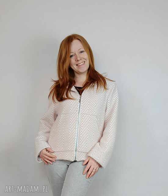 handmade kurtka damska jodełka brudny róż