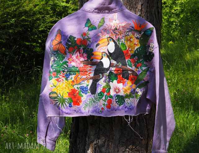 szybka wysyłkaRęcznie malowana kurtka jeansowa custom kolibry. Kurtki handmade Ręcznie malowana krótka jeansowa kurtka damska, lata, natury i żywych kolorów, napisz550,00 zł